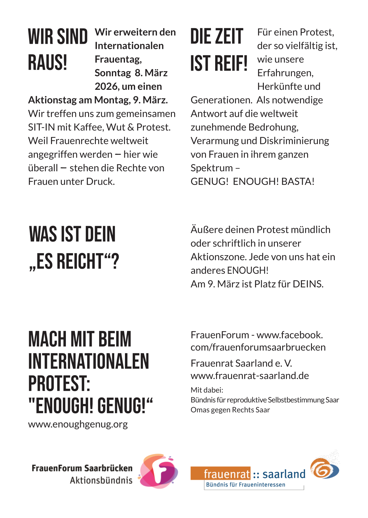 Weltfrauentag in Saarbrücken mit der Initiative enough2026 – Film & Gesprächsanlass